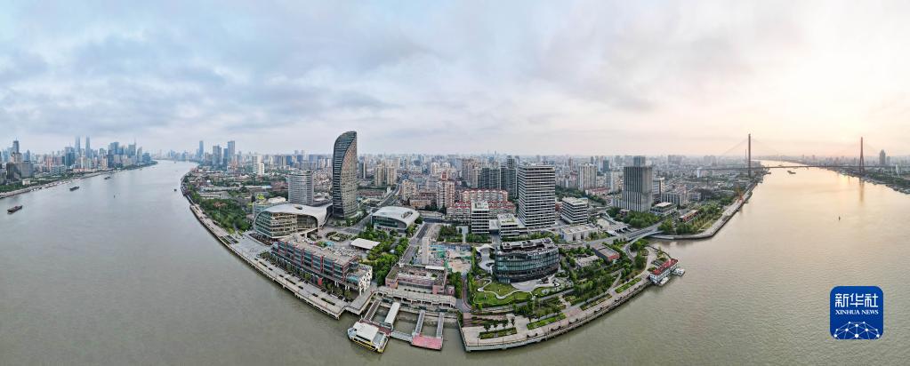 这是2022年7月28日拍摄的杨浦滨江(无人机全景照片)。