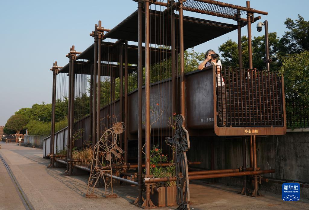 杨浦滨江的纱厂廊架,既是带有历史记忆的工业元素,又是供人们观景休闲的服务设施(2022年7月28日摄)。