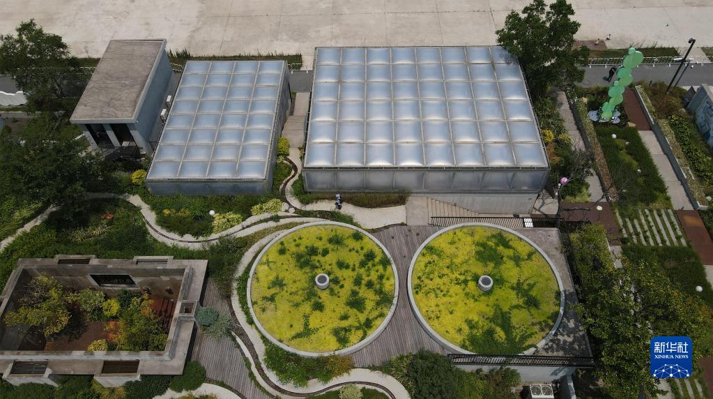 2022年7月12日拍摄的由上海制皂厂污水处理池改造而成的“皂梦空间”,内设咖啡厅、手工坊、文创展示等区域(无人机照片)。