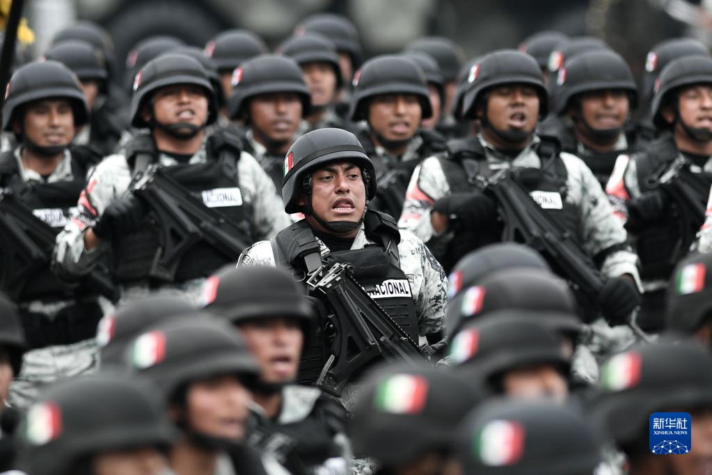 9月16日,在墨西哥首都墨西哥城,墨西哥国民警卫队参加阅兵式。