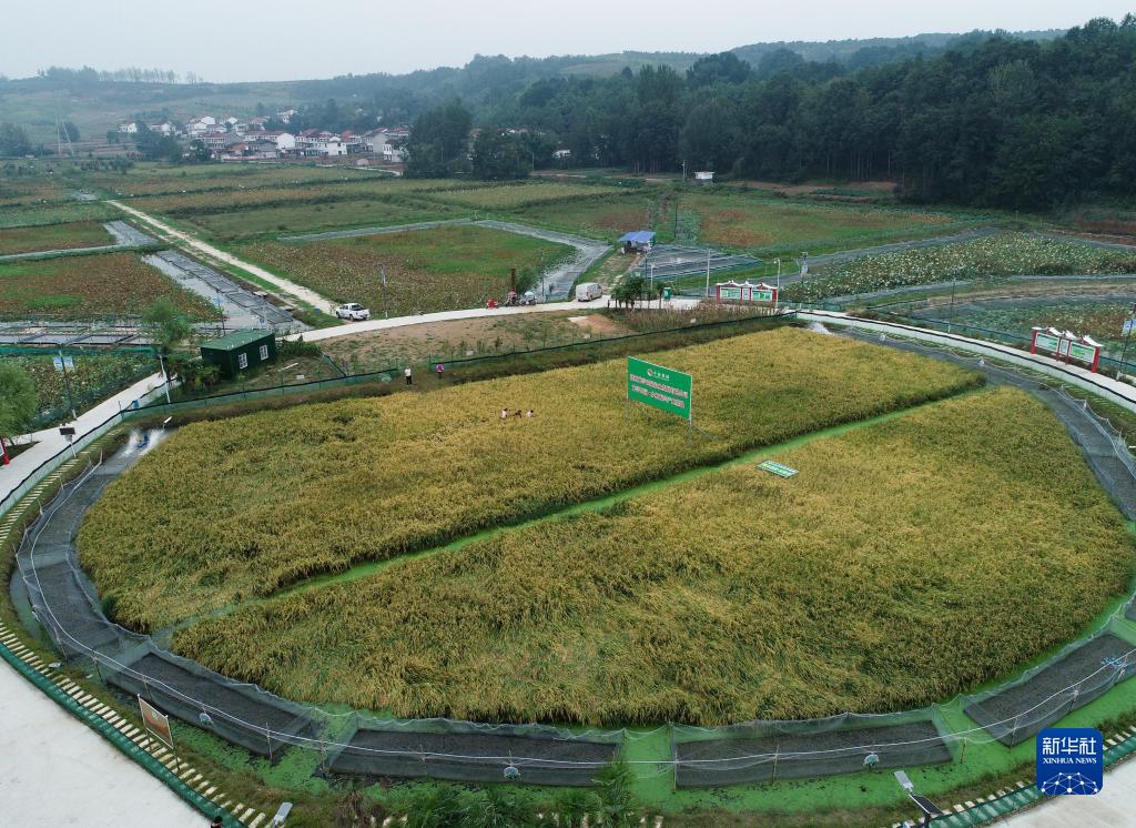 9月15日拍摄的汉中市洋县龙亭镇一处稻渔综合种养基地(无人机照片)。