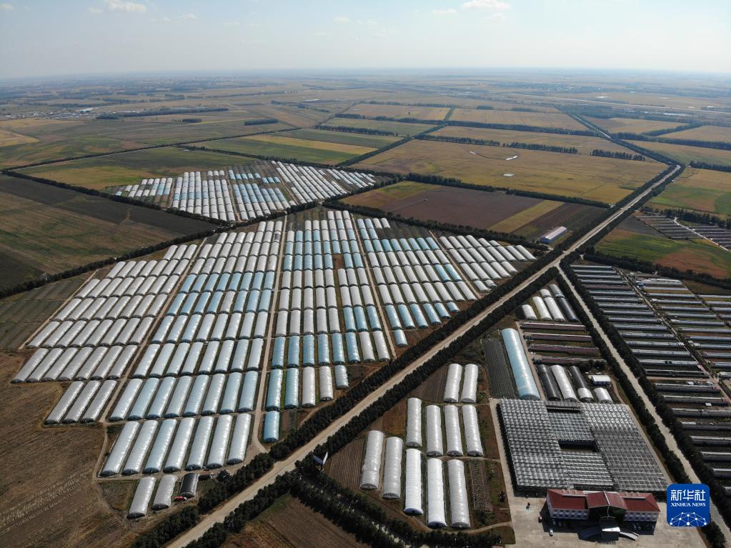 这是兴十四村现代农业示范园区部分大棚温室(9月16日摄,无人机照片)。