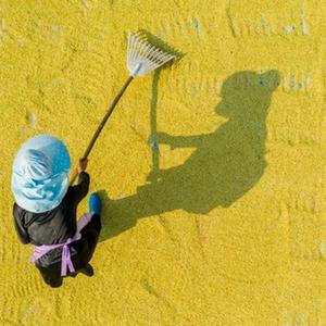 金秋时节,农民忙着收获晾晒,到处是一派丰收景象。