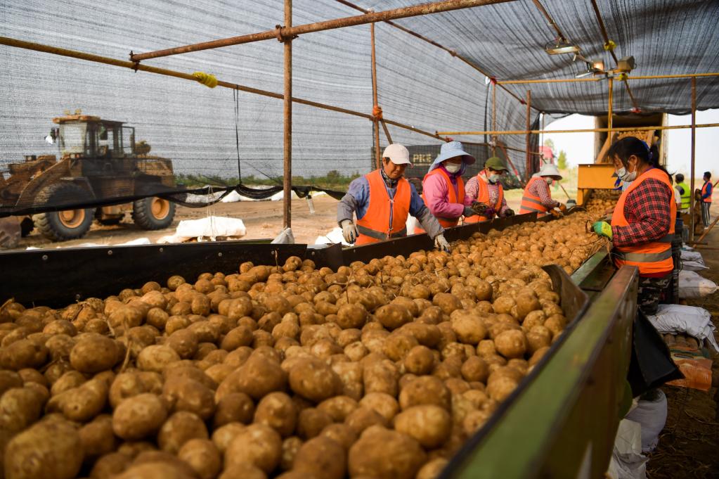 内蒙古鄂尔多斯:沙漠腹地土豆迎丰收