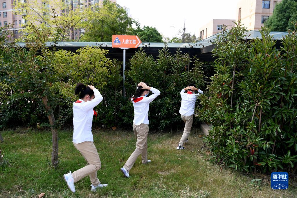 当日,安徽省合肥市朝霞小学开展防空疏散演练活动,提高学生的防空防灾意识和自救互救能力。