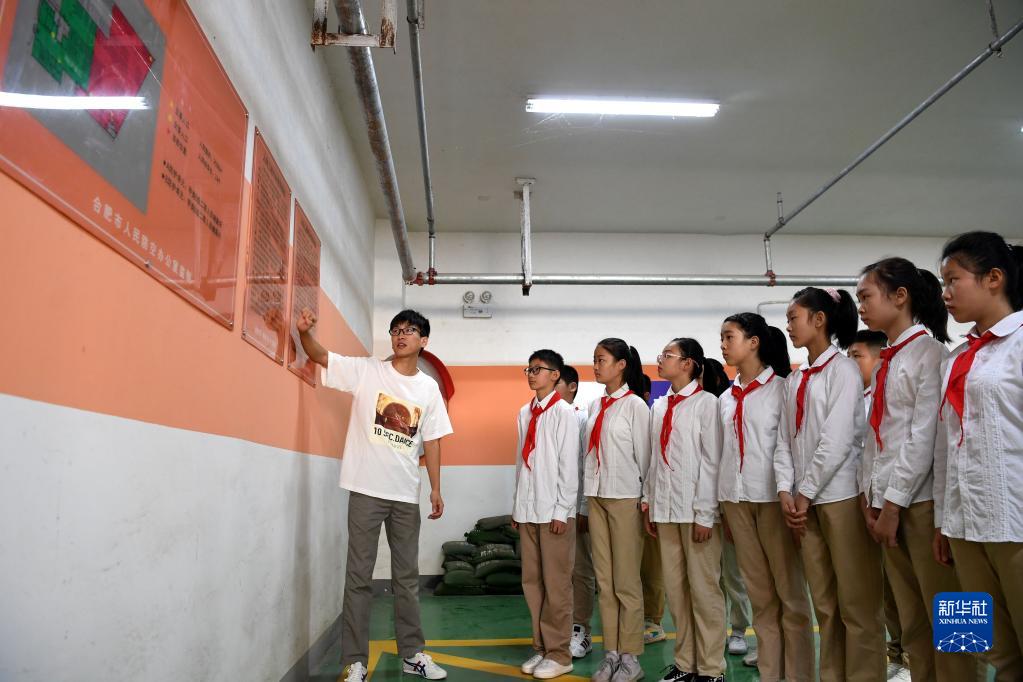 9月18日,合肥市朝霞小学的学生在校园人防工程内学习人防知识。