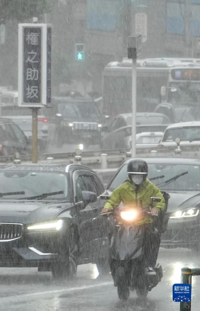 9月19日,人们在日本东京街头冒雨驾车出行。