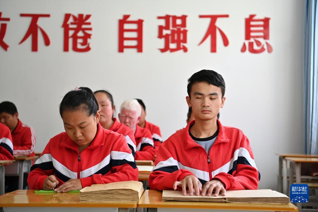 陵川县盲人曲艺宣传队的队员们在学习盲文(9月15日摄)。