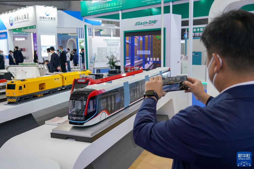 9月20日,在第七届中国-亚欧博览会上,参观者在中国中车股份有限公司展位拍照。