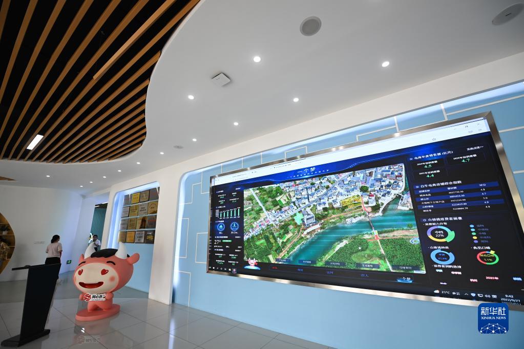 9月21日拍摄的杭州市临安区昌化镇白牛村电商大楼农创客中心的数字大屏。