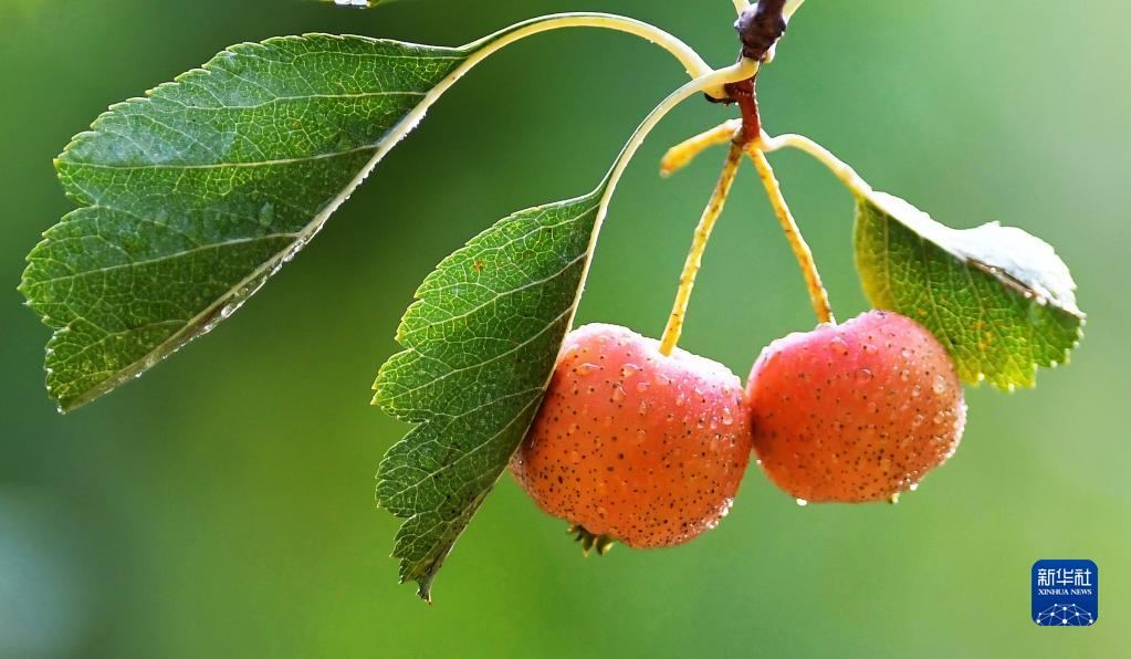 山东省滕州市西岗镇,农户种植的山楂红了(9月17日摄)。