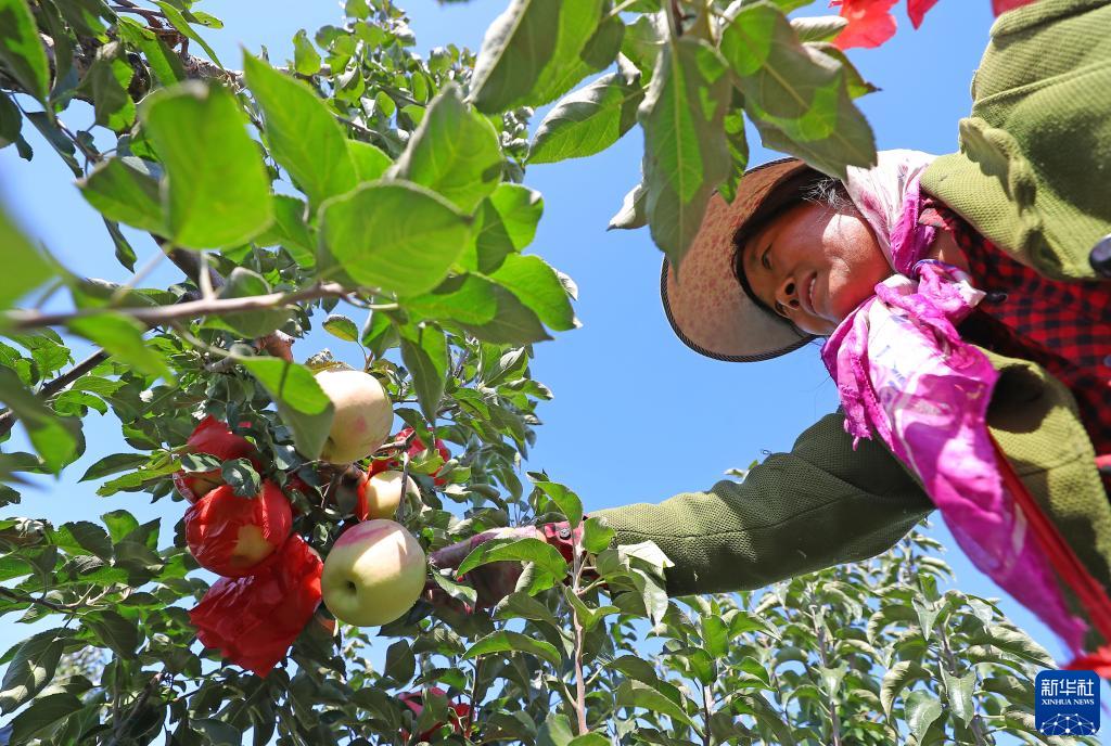 近日,在辽宁省沈阳市康平县方家屯镇,康平红薯、苹果、小米等特色地标农产品丰收在望,农民在田间果园采摘劳作。据统计,康平县今年种植小米5000余亩、寒富苹果3.5万亩、红薯近2万亩,均喜获丰收。