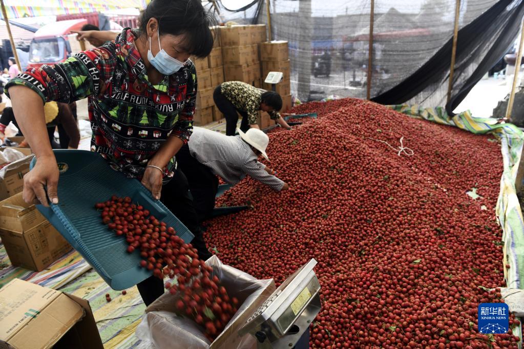 在山东省新泰市刘杜镇南流泉村,红彤彤的山楂挂满枝头,村民们忙着采摘、包装、交易。刘杜镇是远近闻名的山楂产地,全镇山楂种植面积2.3万亩。