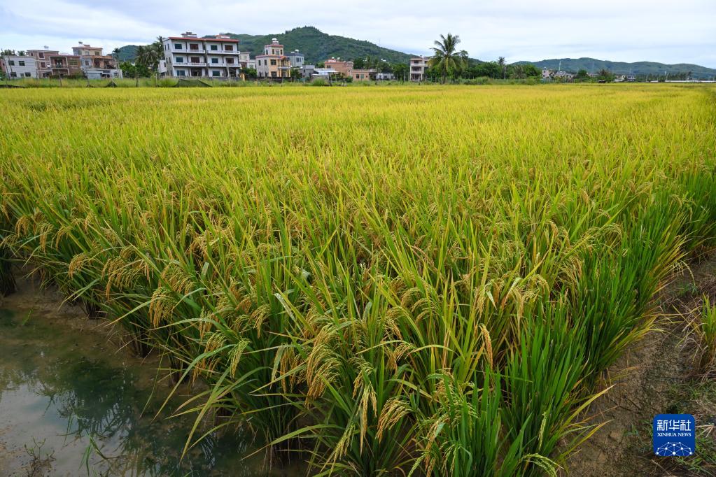 近日,位于海南陵水的国家南繁科研育种核心区安马洋基地的稻田里稻香扑鼻,一片丰收在望的景象。