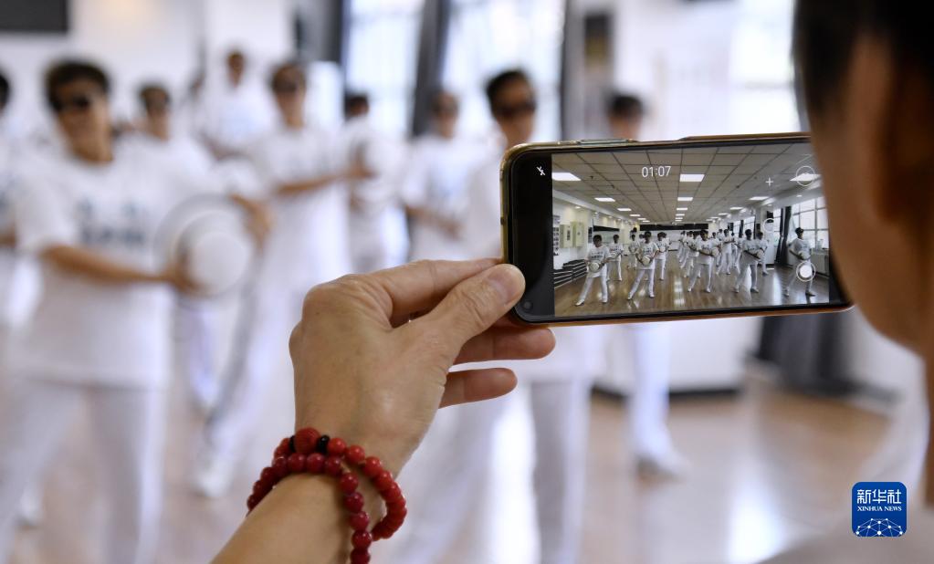 居民在北京市朝阳区八里庄街道社区文化中心拍摄舞蹈排练(9月22日摄)。