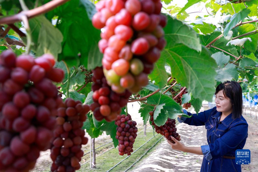 9月21日,在河北省唐山市丰南区奕品葡萄种植园,“80后”刘茜在采摘葡萄。2018年,刘茜开始种植高端葡萄,成立奕品果蔬种植农业合作社。如今,她种植的“阳光玫瑰”产品订单源源不断,年收益达上百万元。