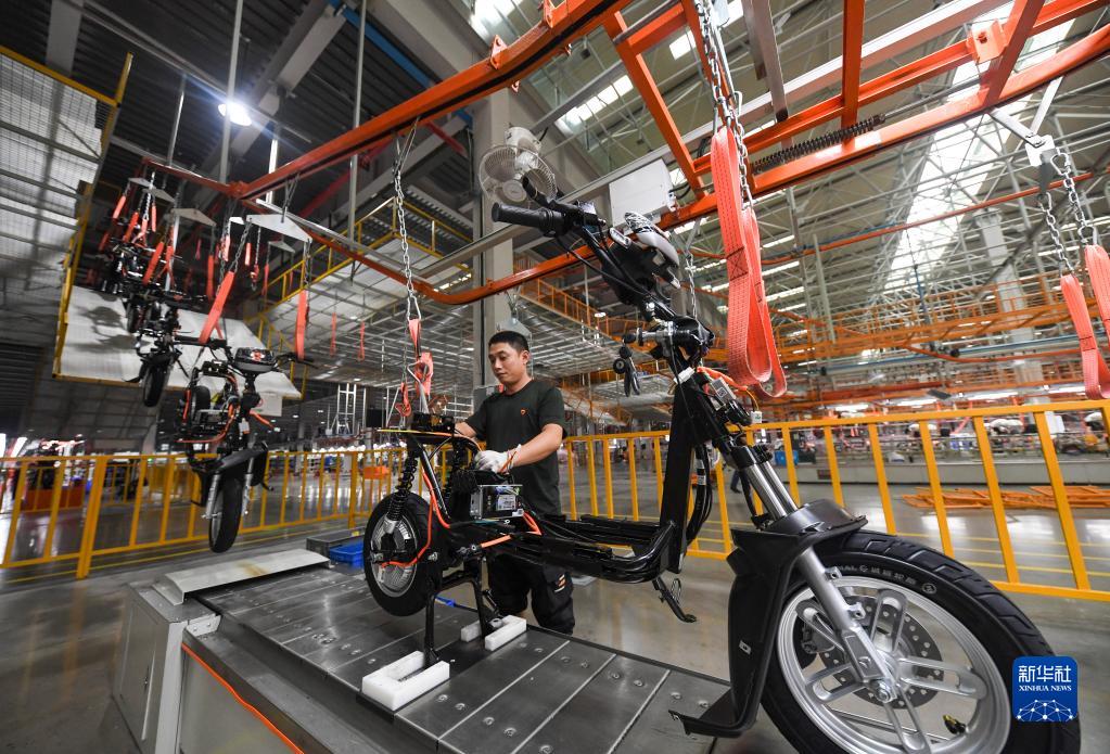 9月22日,工人在雅迪集团重庆永川电动车生产基地智能化生产车间作业。