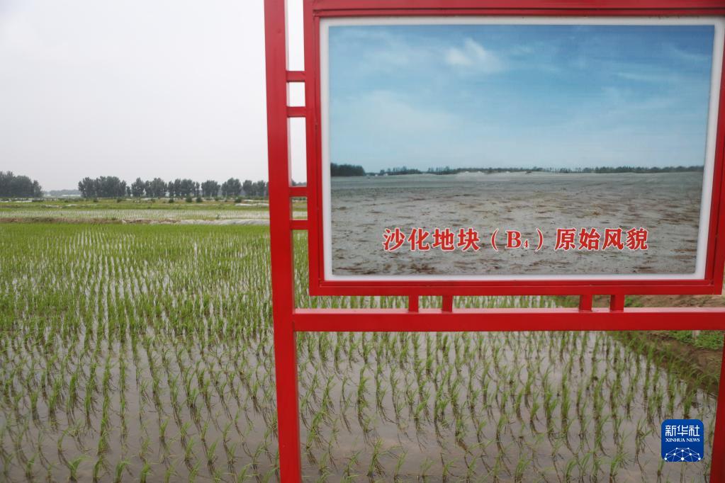 这是2022年6月13日拍摄的阜新市彰武县大冷镇上三家子村的稻田及此块土地原始风貌展板。