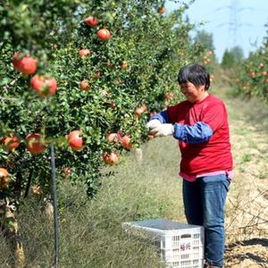 金秋时节,在陕西省渭南市潼关县的东台塬上,一排排石榴树缀满红彤彤的果实。近年来,潼关县发挥传统种植石榴的优势,大力发展软籽石榴产业,引进和培育多类优质产品,让小石榴落地生根,成为群众致富奔小康的“软黄金”。