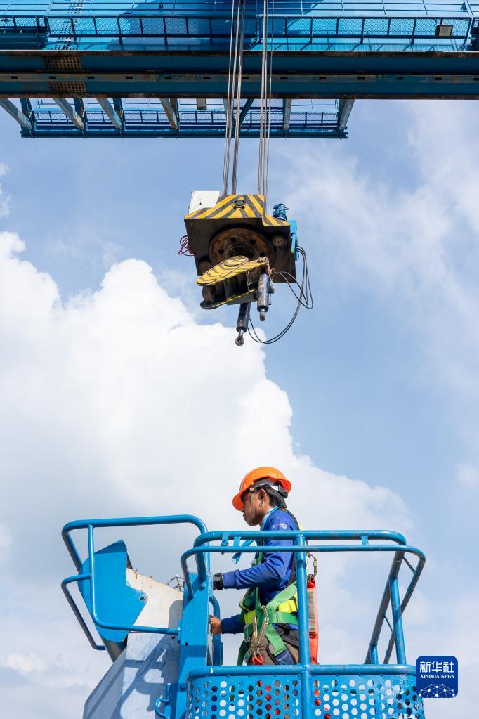 9月7日,在泰国呵叻,一名工作人员在中泰铁路建设现场工作。