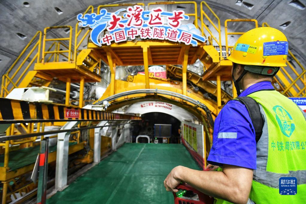 日前,中铁隧道局建设者驾驶“大湾区号”盾构机,在深江铁路珠江口隧道南沙段以每天12至16米的速度向虎门方向掘进。该隧道全长13.69公里,海底最大埋深达115米。