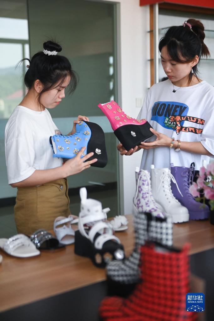 9月27日,在诸暨市姚江镇一家鞋业企业内,工作人员在查看一批完成设计打样即将批量生产的女鞋,该企业的外贸订单生产计划已经排到了年底。