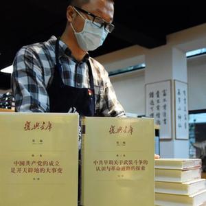 9月27日,工作人员在北京中华书局伯鸿书店整理刚刚到店的《复兴文库》大型历史文献丛书。