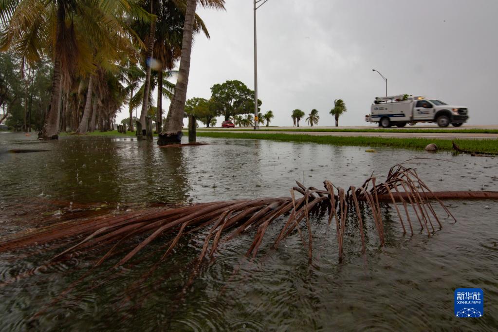 9月27日,在美国佛罗里达州迈阿密,飓风登陆前的降雨导致当地水位升高。