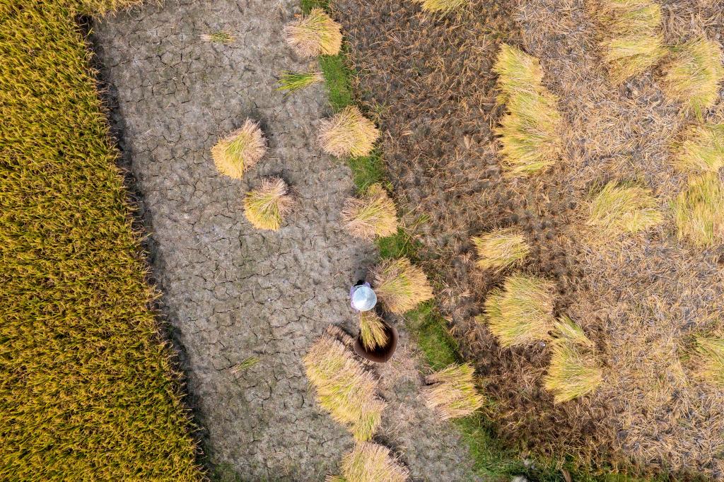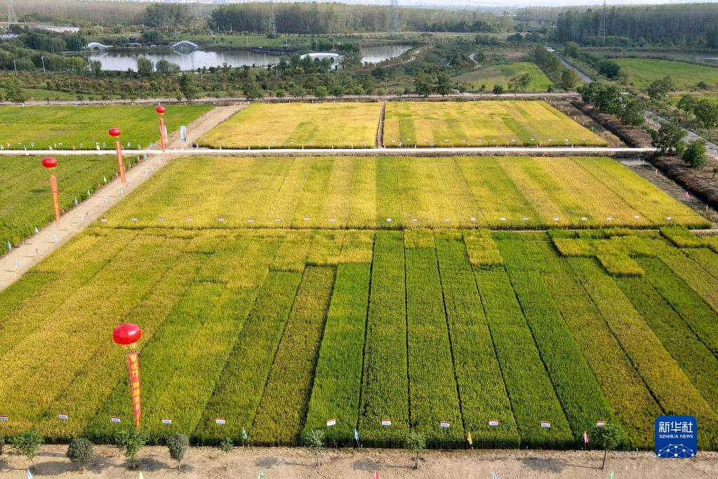 9月26日拍摄的安徽省合肥市长丰县岗集镇牛寨村淮西现代农业示范园节水抗旱稻试验基地(无人机照片)。
