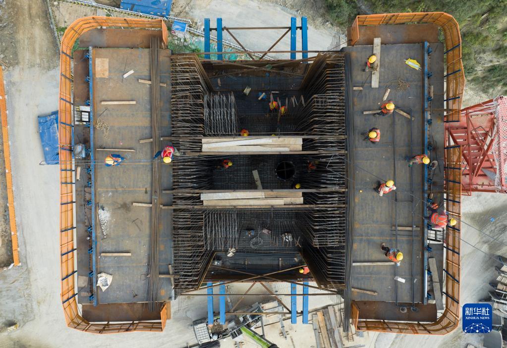 这是9月28日拍摄的位于陕西省延安市洛川县的西延高铁北洛河特大桥施工现场(无人机照片)。