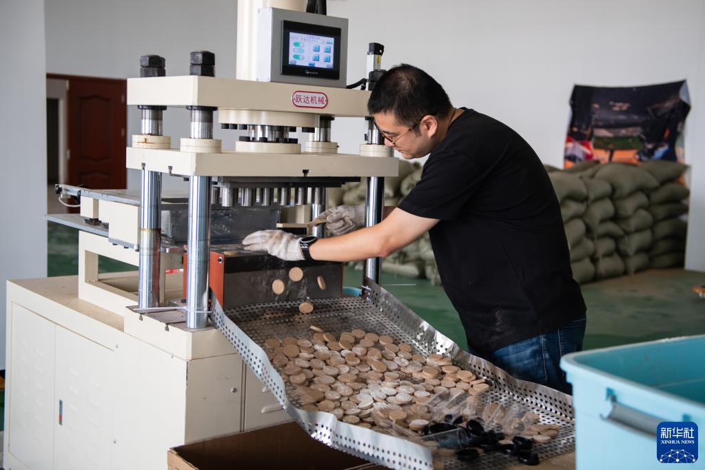 9月29日,在位于常德科技创新创业孵化产业园的常德一把好手环保科技有限责任公司,工作人员生产以木屑为原料的洗手片。