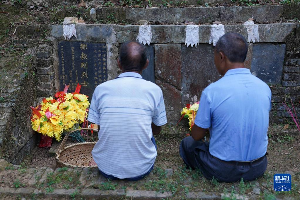 在江西省赣州市于都县宽田乡石含村,有一座红军烈士墓,埋葬着邓毅刚烈士的遗骨。石含村的谢家祖孙六代从1932年起守护烈士墓,至今已90年。如今,七十多岁的谢南京还是坚持带着家人经常来到邓毅刚烈士墓前,为这位“邓爷爷”扫墓。
