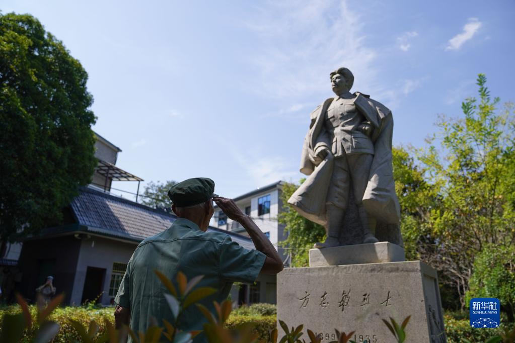 9月23日,程樟柱在方志敏烈士塑像前向先烈行军礼。