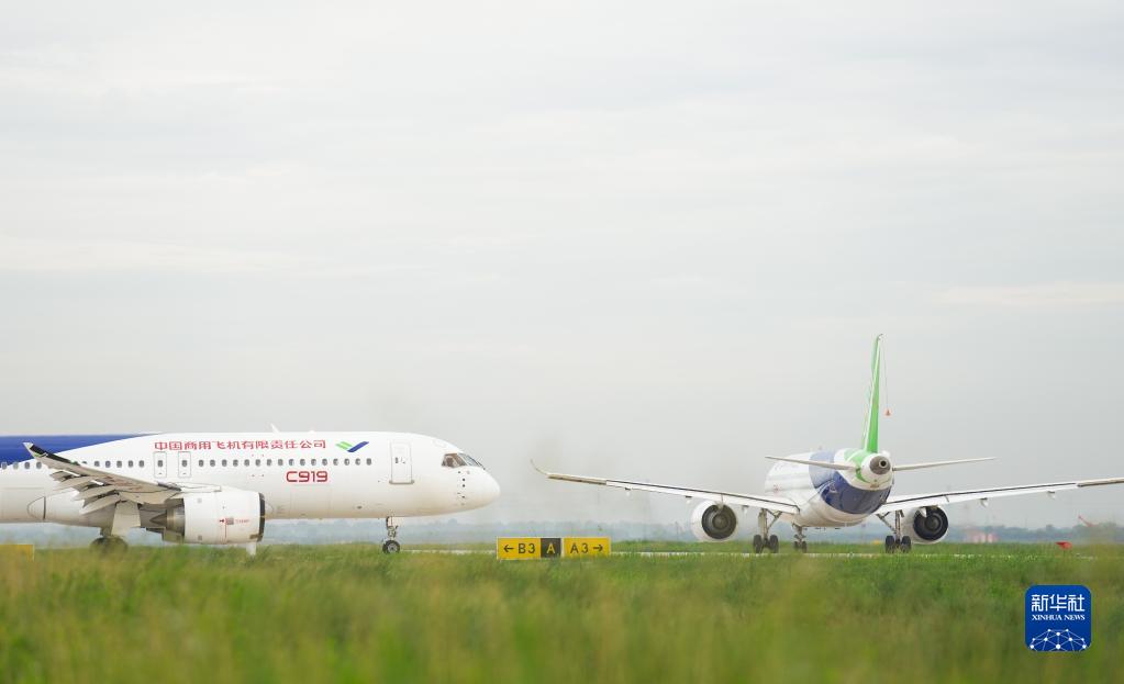这是2022年7月18日在陕西省蒲城县拍摄的C919大飞机的试飞机。新华社记者 丁汀 摄
