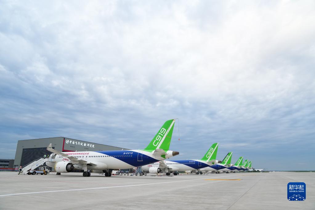这是2022年7月18日在陕西省蒲城县拍摄的C919大飞机的试飞机。新华社记者 丁汀 摄