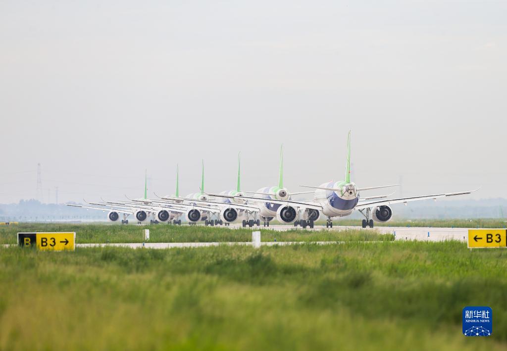2022年7月18日在陕西省蒲城县拍摄的C919大型客机的六架试飞机。