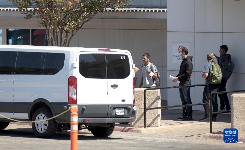 9月30日,在美国得克萨斯州圣安东尼奥,移民排队登上转送车辆。