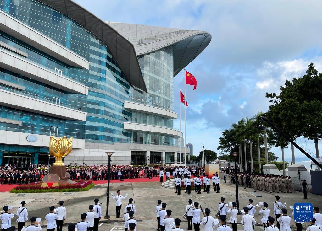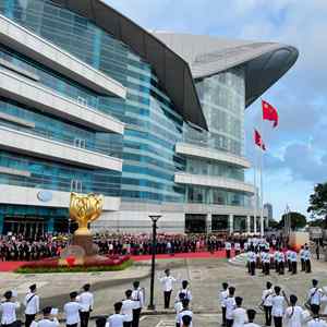 10月1日,香港特别行政区政府在金紫荆广场举行升旗仪式,庆祝中华人民共和国成立73周年。