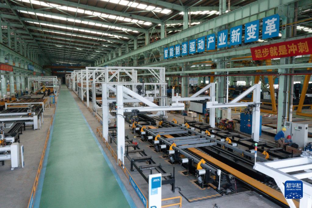 智能化钢结构模块化生产线(2022年9月28日摄,无人机照片)。