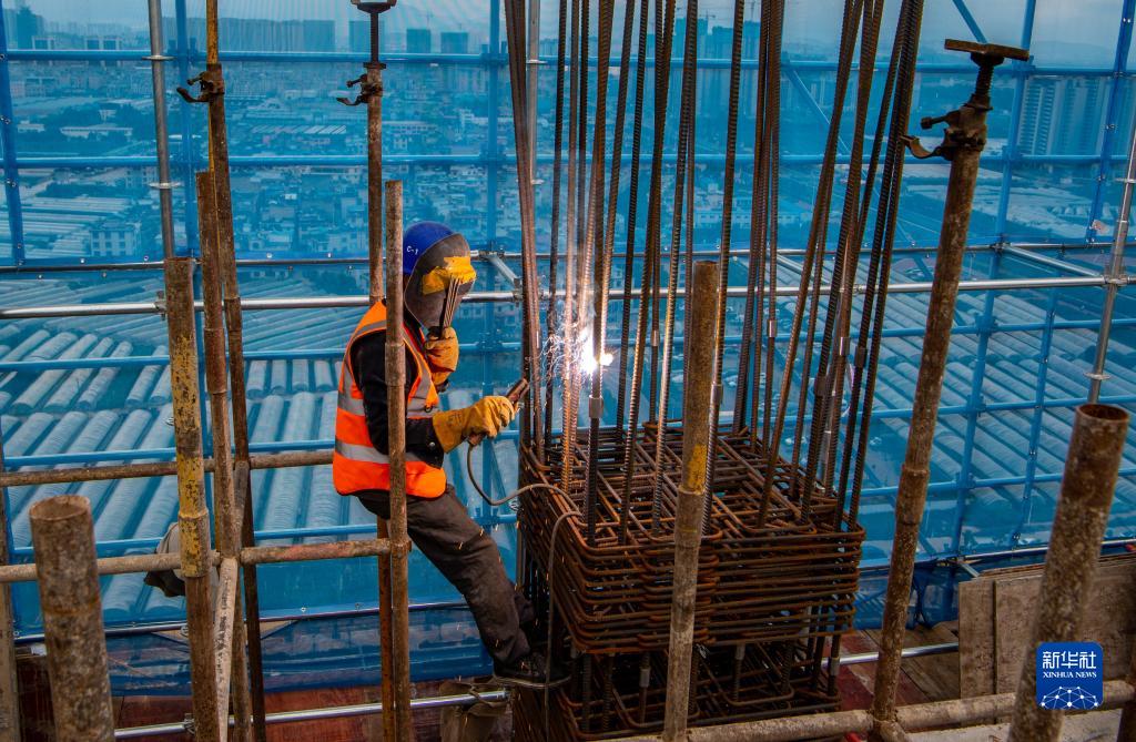 10月2日,中建七局西南公司工人孔德志在昆明斗南花卉小镇花卉产业综合配套服务区项目建设工地施工。