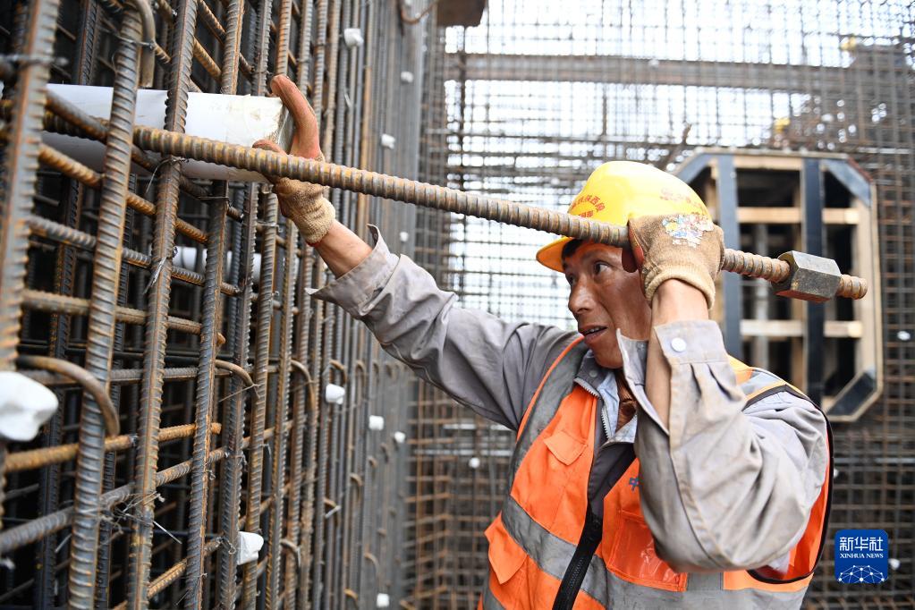 10月2日,中铁上海工程局施工人员在位于陕西省西安市的西十高铁跨浐河连续梁0号块作业。