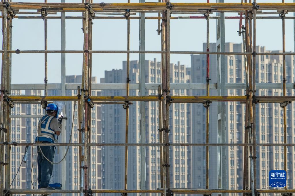 10月2日,中建三局一公司的施工人员在南京市建邺区小米集团华东总部项目施工现场作业。
