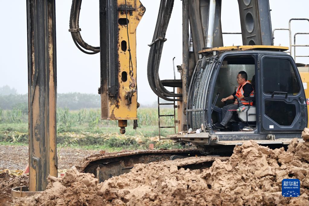 10月2日,中铁上海工程局施工人员在位于陕西省西安市的西十高铁浐河特大桥操作旋转挖机。