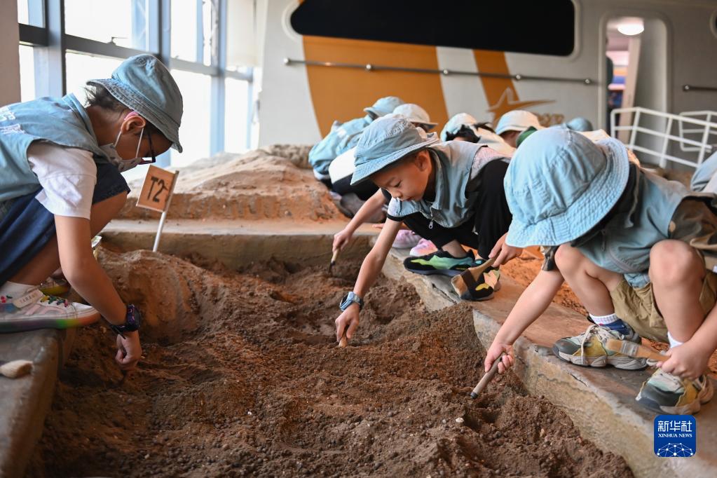 10月2日,小朋友在杭州青少年发展中心“Do都城”体验“考古发掘”。