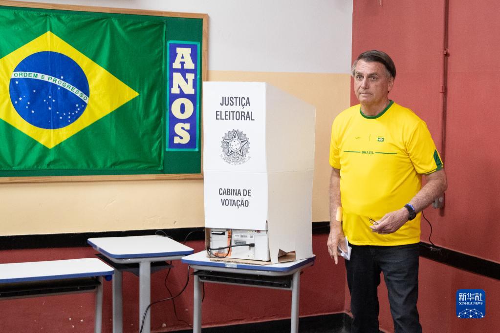 10月2日,巴西右翼阵营自由党候选人、现任总统博索纳罗在里约热内卢一处投票站参加投票。