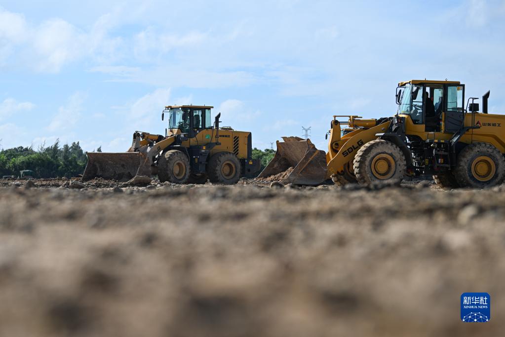 10月3日,工人在位于海南洋浦经济开发区的洋浦海上风电产业园项目工地施工。