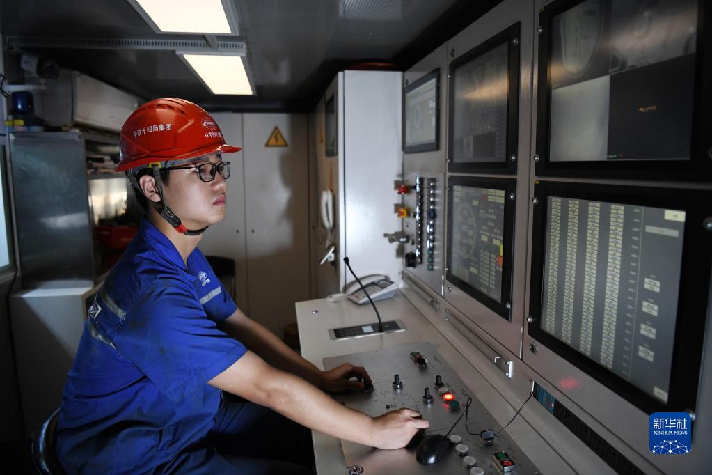 10月3日,盾构机驾驶员在芜湖城南过江隧道施工现场作业。