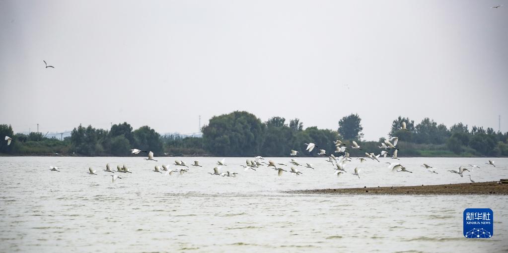 9月26日,淮河江苏淮安洪泽段白鹭飞舞。