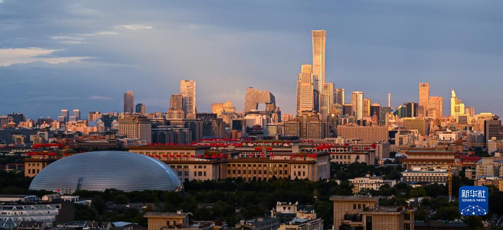 10月3日,夕阳照亮北京CBD的高楼建筑群。据天气预报显示,北京当天冷空气影响逐渐显现,阵风可达七级左右,夜间最低气温预计将降至8℃。