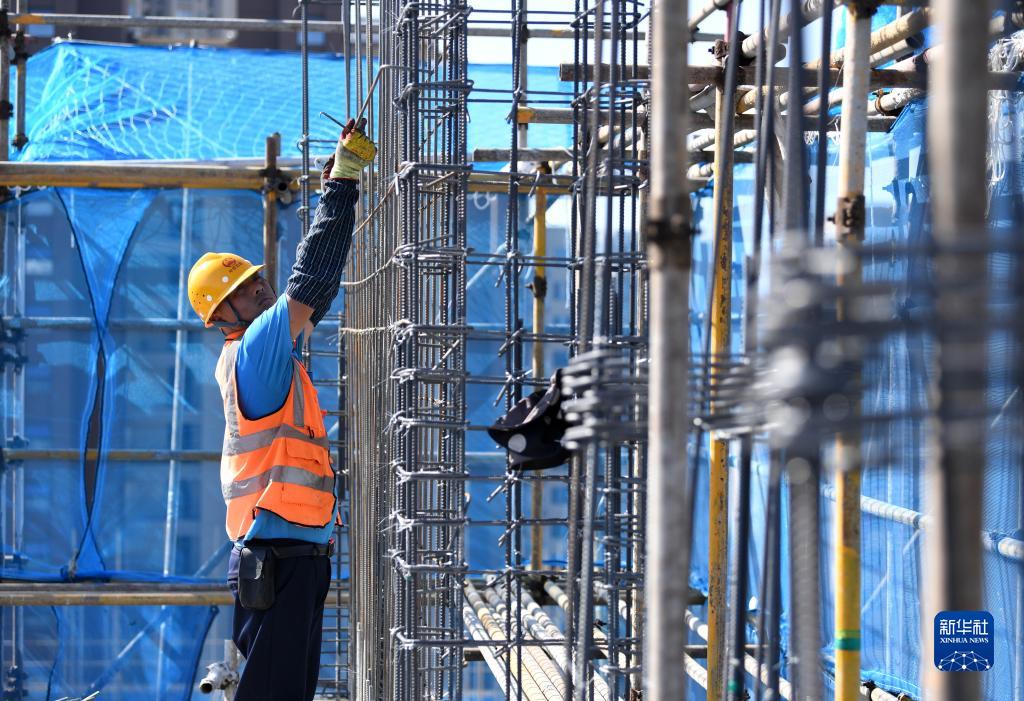 10月3日,工人在中铁四局合肥市瑶海区荷塘家园一期二标安置房项目现场施工。